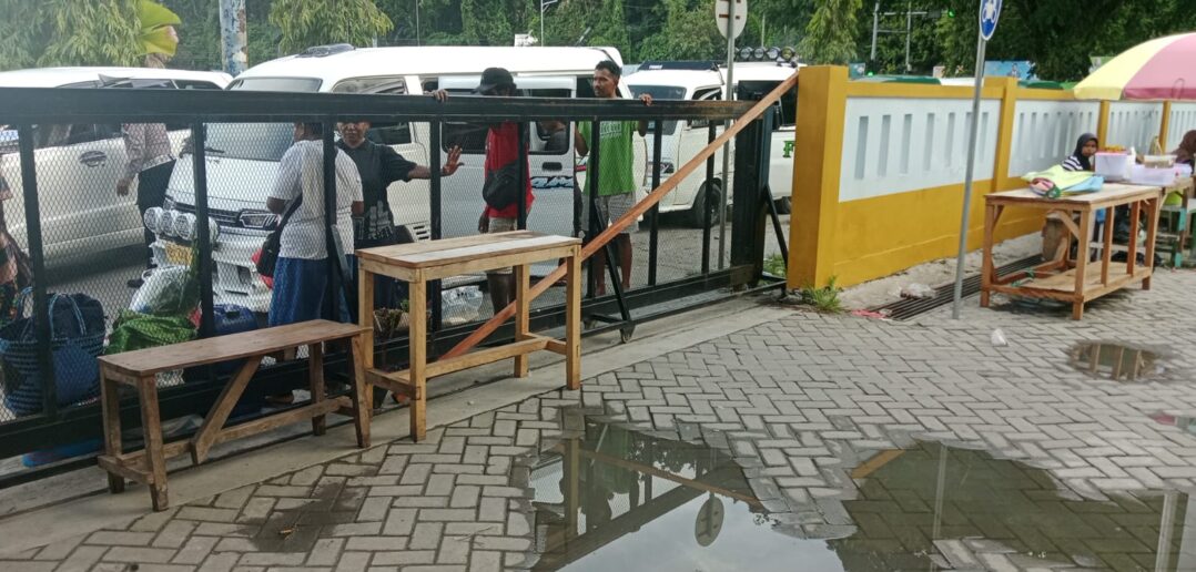 Fakfak, majalahkribo.com – Situasi tegang sempat terjadi di area Pasar Rakyat Thumburuni, Tatar, pada Selasa (17/03/2026). Sejumlah petugas pasar melakukan aksi pemalangan pintu masuk sebagai bentuk protes terhadap keterlambatan pembayaran gaji dan tunjangan.