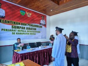 Sebelumnya, Bupati Deiyai melantik tujuh penjabat kepala kampung. Dari 67 kampung di Deiyai, kini sudah 9 kampung sudah diganti Pj Kepala Kampung yang baru. Masih ada 58 kampung yang akan diganti. Pergantian ini bagi kepala kampung yang sudah meninggal dan sudah menjadi CPNS