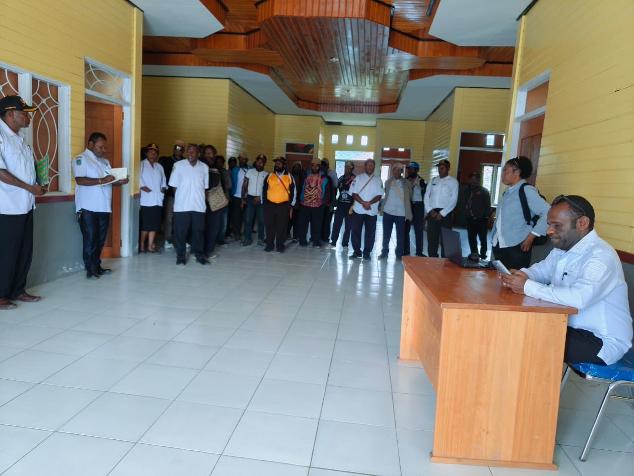 “CPNS baru di Deiyai 1000 lebih. Untuk lakukan prajabatan, kita akan lakukan per tahap. Karena, uang kita sangat terbatas. Sehingga, tidak bisa dilakukan satu kali prajabatan. Kita akan utamakan terlebih dulu bagi CPNS yang aktif. Maka itu, saya minta kepada seluruh ASN untuk tidak saling bantu dalam tanda tangan pada absen harian,” tegas Bupati Mote