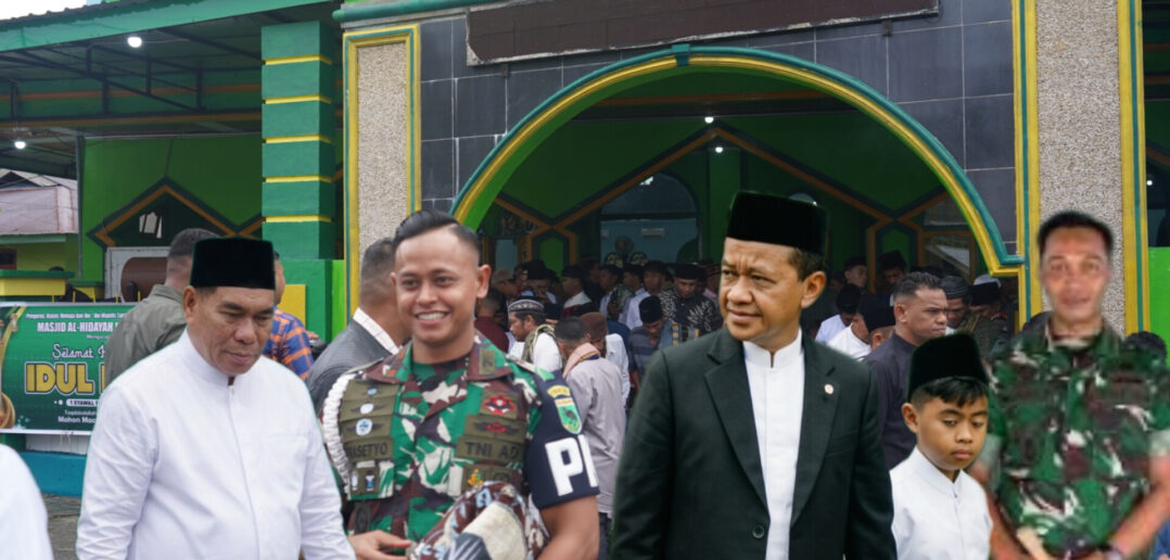Fakfak, majalahkribo.com — Komandan Kodim (Dandim) 1803/Fakfak, Wahlin Rahman, bersama Dansubdenpom XVIII/1-2 Fakfak, Prasetyo Budhi Setiawan, mendampingi Menteri Energi dan Sumber Daya Mineral (ESDM), Bahlil Lahadalia, dalam pelaksanaan Salat Idul Fitri 1447 H/2026 M di Masjid Al-Hidayah, Kebun Kapas, Distrik Fakfak, Sabtu (21/3/2026).