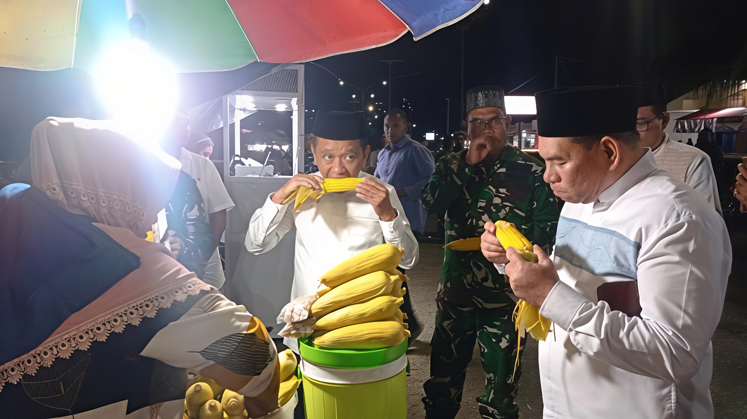 Selain memborong jagung, ia juga membeli pinang dan mencicipinya di tempat. Dengan logat Papua, Bahlil mengatakan, “Saya makan pinang ini tra pusing,” yang semakin mencairkan suasana kebersamaan malam itu.