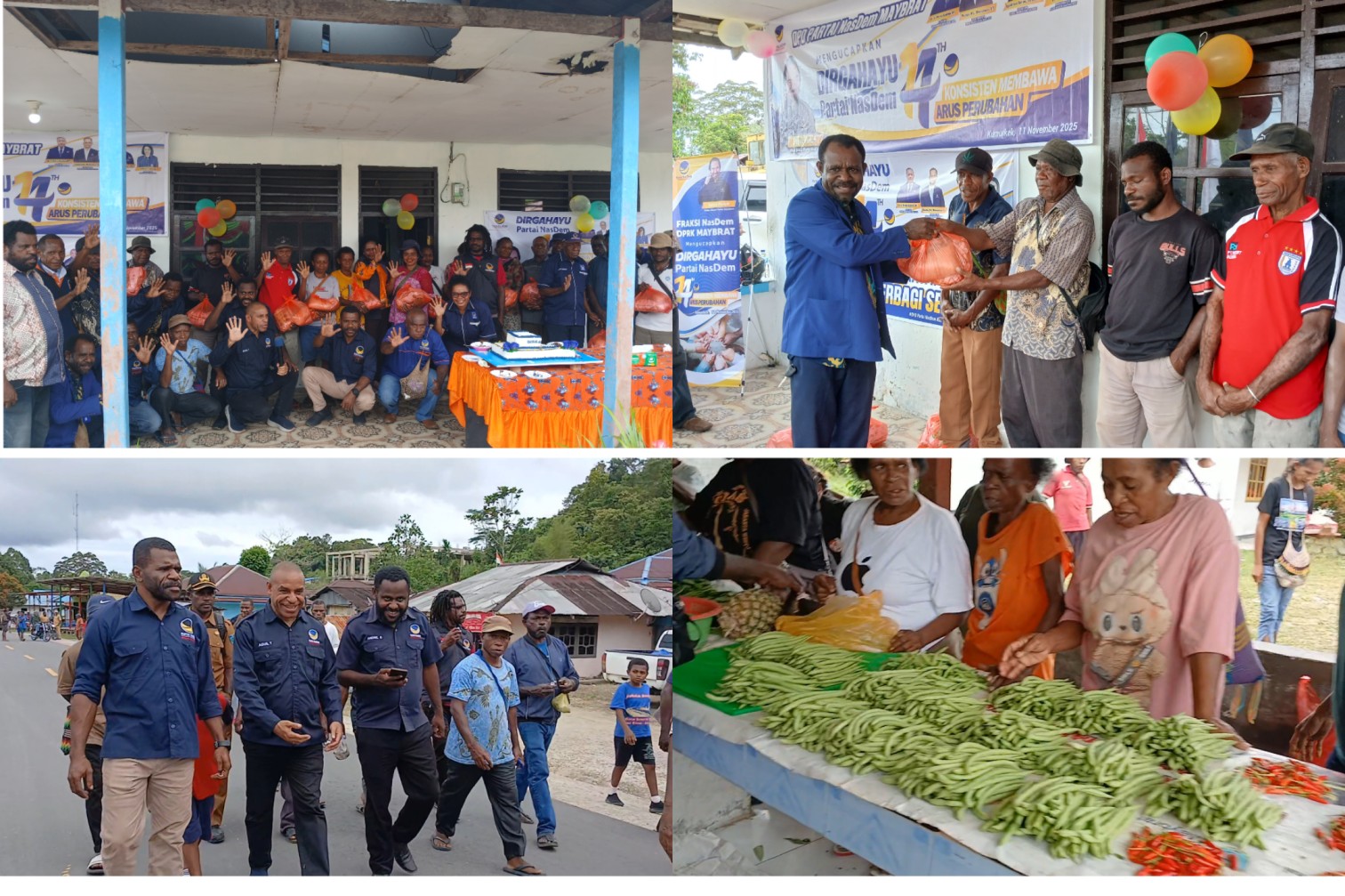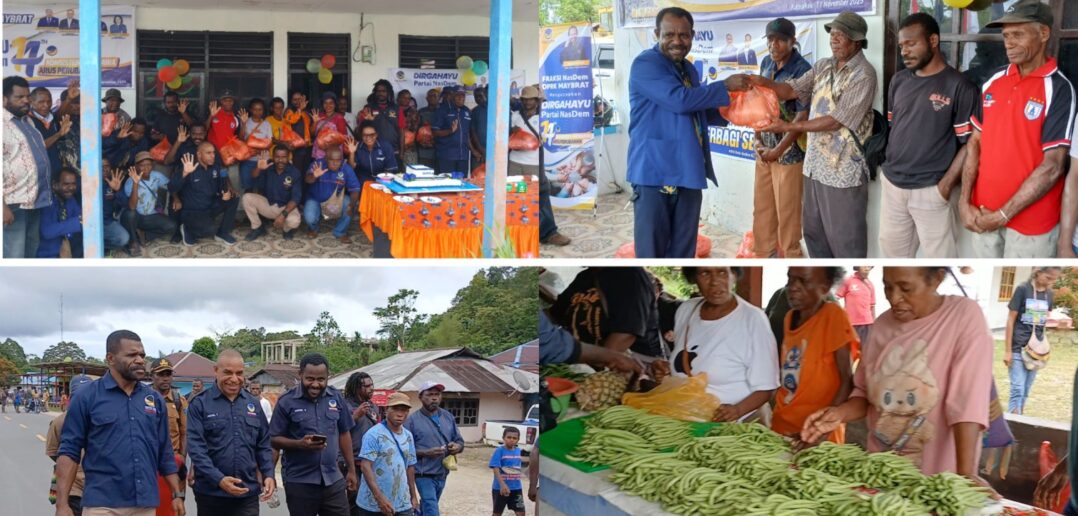Selain pemotongan kue ulang tahun yang berlangsung semarak, DPD Partai NasDem Maybrat juga menggelar kegiatan sosial berupa pembagian paket sembako kepada masyarakat dan aksi demo pasar dengan cara memborong hasil jualan para pedagang lokal di Pasar Mama-Mama Kumurkek. Produk seperti pinang, sayur-mayur, gading, cabai, hingga kerajinan tangan ibu-ibu dibeli habis sebagai bentuk dukungan nyata terhadap ekonomi rakyat kecil.