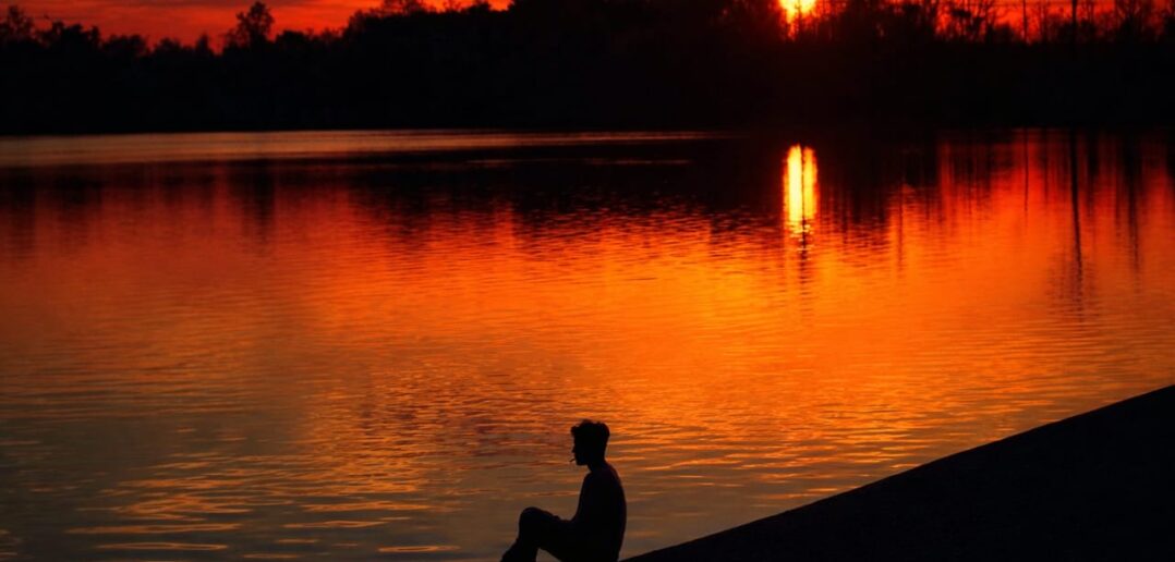 Begitu tiba, waktu seakan melambat. Matahari perlahan tenggelam terpejam di balik deretan pepohonan. Siluet batang dan ranting membingkai langit jingga yang hangat. Cahaya emasnya memantul lembut di atas permukaan air yang tenang, menciptakan pantulan yang nyaris sempurna.