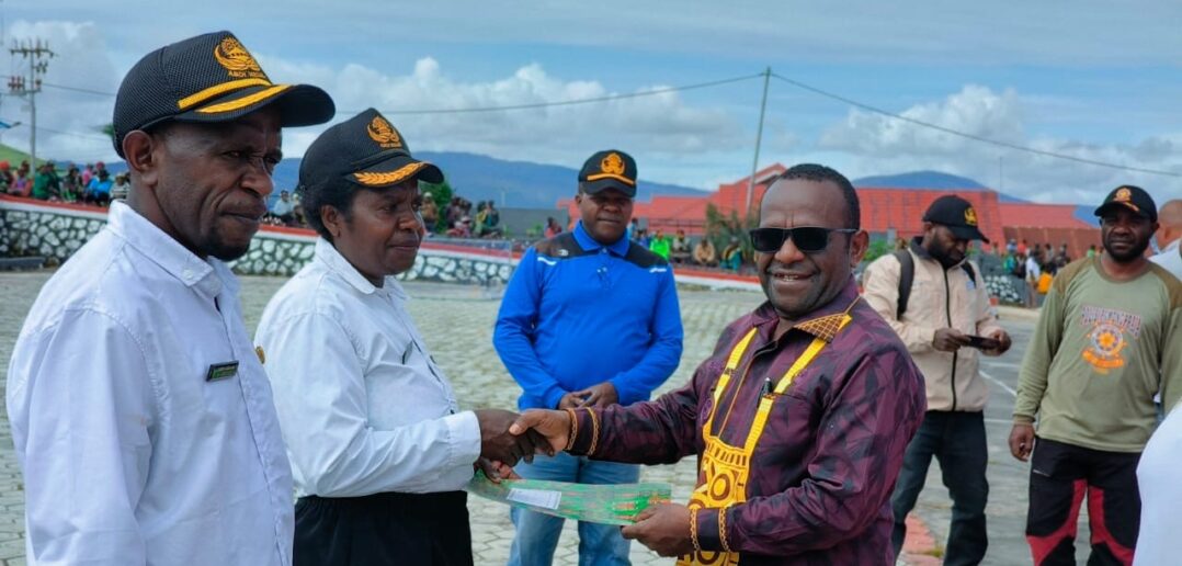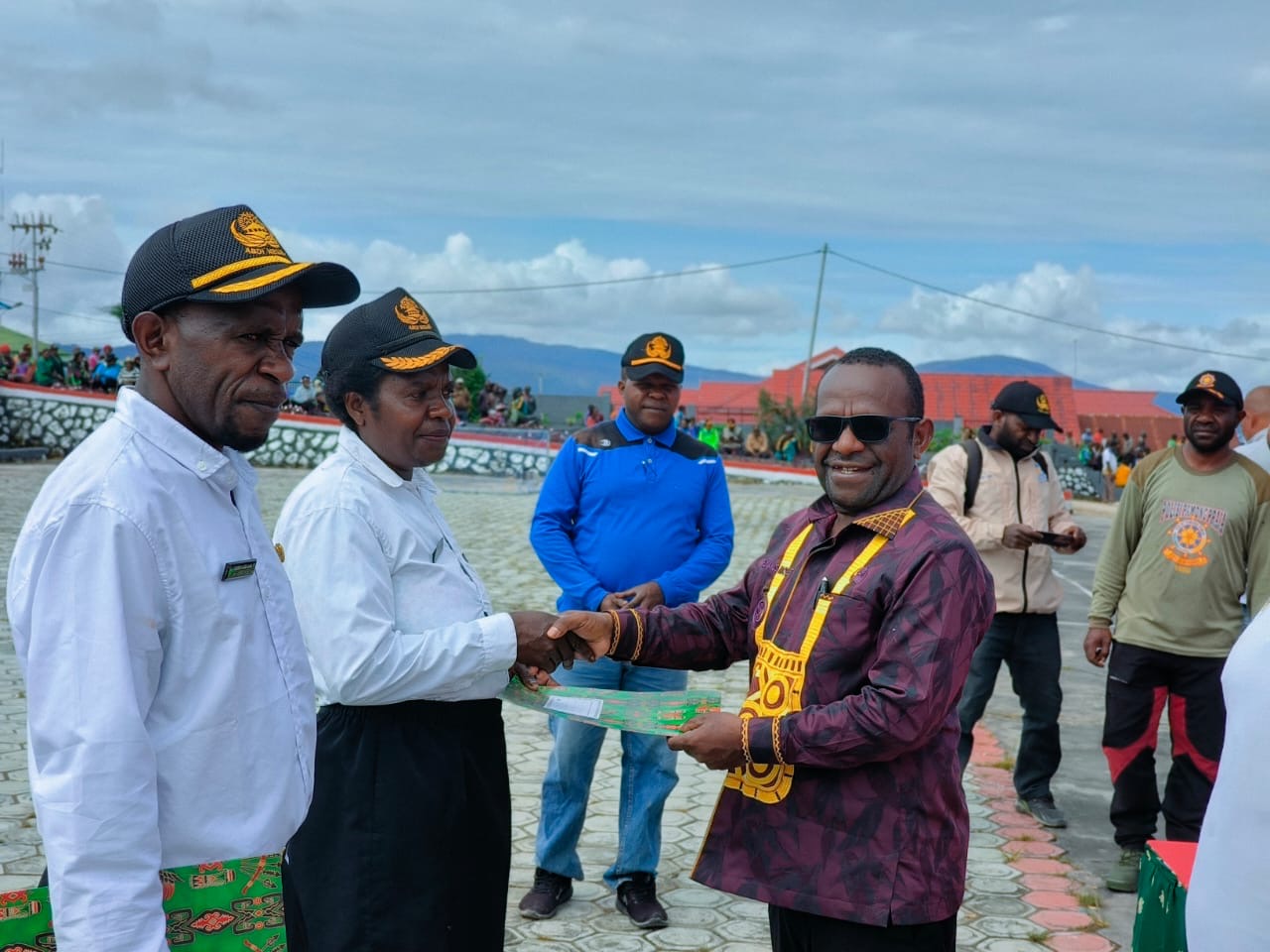 DEIYAI — Bupati Kabupaten Deiyai, Melkianus Mote membagikan SK CPNS K2 tahap III kepada 69 orang. Pembagian ini dilakukan di halaman kantor Bupati, Jumat (14/11) pagi