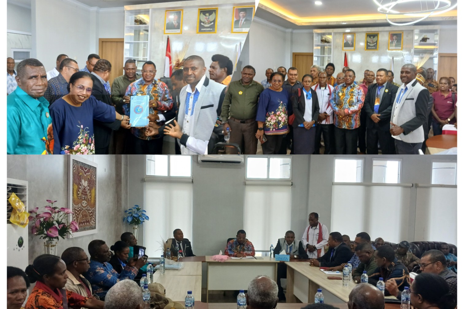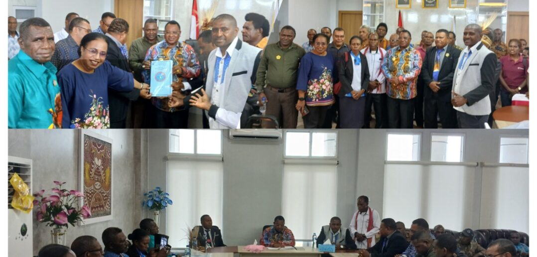 Maybrat, majalahkribo.com Jajaran Pengurus Sinode Gereja Pentakosta di Papua Barat (GPd-PB), didampingi Pengurus Klasis Maybrat, melakukan audiensi dengan Bupati Maybrat, Karel Murafer, dan secara resmi menyerahkan dokumen organisasi gereja di ruang kerja Bupati Maybrat, Kamis (9/10/2025).